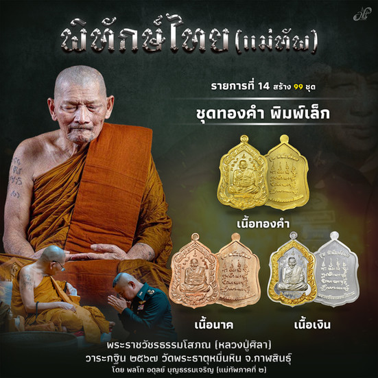 และจัดการประมูลเหรียญเนื้อทองคำพิมพ์ใหญ่ ชุดทองคำพิมพ์เล็ก หมายเลข 1-9 ได้ยอดถวายปัจจัยรวม 9,000,000 บาท (แบ่งเป็นยอดประมูลหลังจากหักส่วนต่าง 8,385,018 บาท เหรียญนำฤกษ์ 480,000 บาท และยอดที่คุณนุร่วมถวาย) น้อมถวายแด่หลวงปู่ศิลา สิริจันโท เพื่อสาธารณะประโยชน์ต่อไป