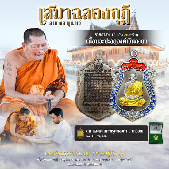 19 กุมภาพันธ์ 2567 คุณนุและทีมงานได้น้อมถวายปัจจัย 6 ล้านบาท ให้แด่หลวงปู่ศิลา สิริจันโท ณ ธรรมอุทยาน พร้อมกับนำรูปแบบเหรียญเสมาให้หลวงปู่ได้ชม โดยรุ่นนี้ทางคุณนุได้จัดสร้างพิมพ์เล็กและพิมพ์ใหญ่ นับเป็นรุ่นแรกในสายที่มีการจัดสร้างพิมพ์เล็กเพื่ออำนวยให้เด็กและผู้หญิงสามารถขึ้นคอได้อย่างสวยงาม ซึ่งหลวงปู่ก็เอ่ยปากว่า “สวย” พร้อมกับมอบยันต์หัวใจเศรษฐี (ด้านหน้า) ยันต์ไก่ฟ้าพญาเศรษฐี (ด้านหลังพิมพ์เล็ก) ยันต์อิติปิโสแปดทิศ (ด้านหลังพิมพ์ใหญ่) ให้ใส่ในเหรียญเสมาฉลองกุฏิ